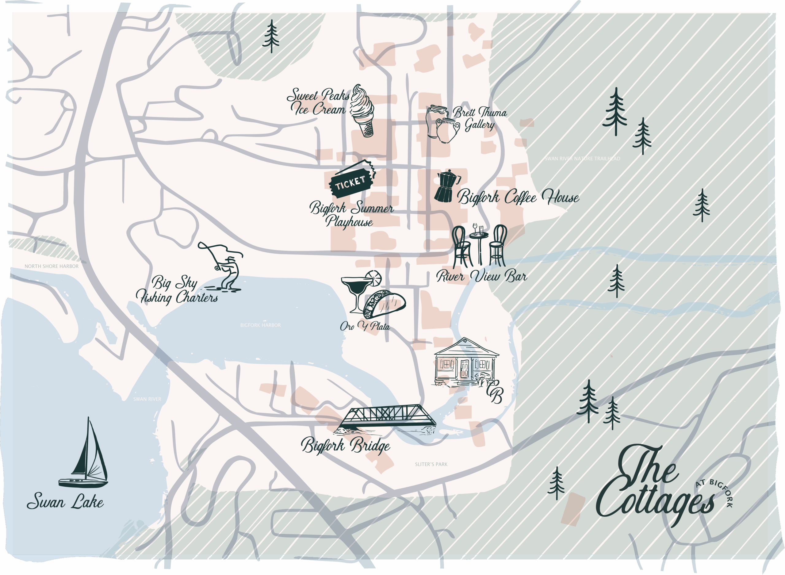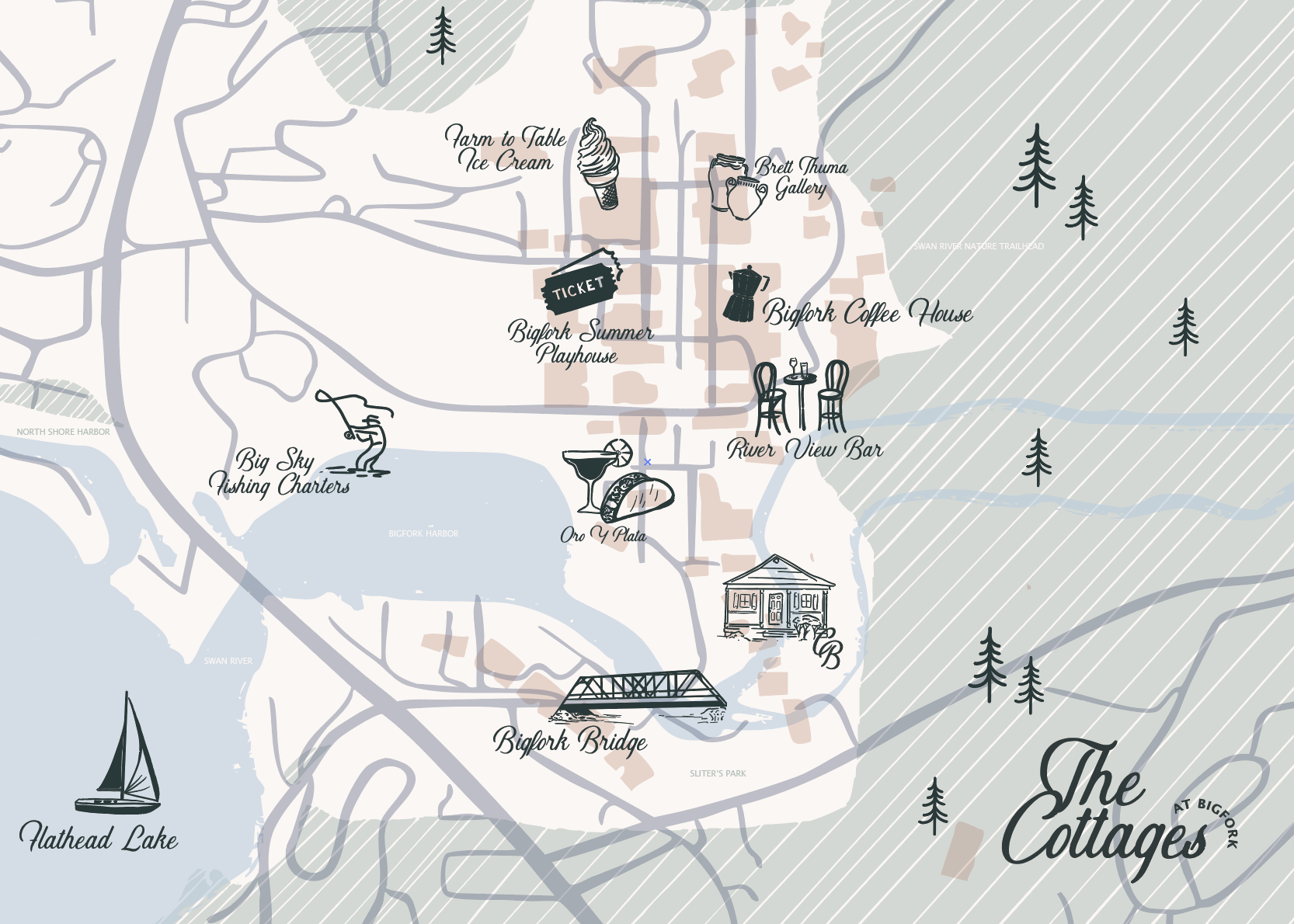 TUCKED BETWEEN LAKE AND MOUNTAIN, BIGFORK IS A PLACE WHERE TIME SLOWS DOWN. OUR LOCAL GUIDE LEADS YOU THROUGH THE TOWN WE LOVE. FROM MORNING COFFEE AND HIDDEN TRAILS TO LAKESIDE DINNERS AND GOLDEN-HOUR STROLLS. DISCOVER THE SPOTS THAT MAKE BIGFORK FEEL LIKE COMING HOME.